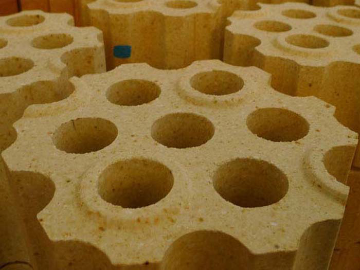 高鋁孔磚也可以稱作熱風(fēng)爐格子磚,是目前被世界煉鐵界廣泛認同和接受的一種熱交換能力強、蓄熱面積大、通氣順暢、阻力小等諸多越熱工特性的載熱蓄熱體,常用于熱風(fēng)爐。高鋁孔磚是一種傳熱介質(zhì),主要用在熱風(fēng)爐蓄熱室中上部,起蓄熱作用。在把冷風(fēng)加熱成熱風(fēng)的過程中,起著其重要的作用。